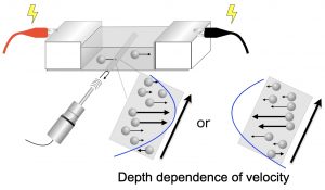 Figure 2: Near the cell wall, a flow in the opposite direction to that of the particles occurs, called electroosmotic flow, and the ESS method uses phases to acquire data at different sample positions in a single measurement without any repeated scanning measurements. It can also identify the direction of particle motion, as well as the direction of motion that is positively or negatively inverted due to osmotic flow.