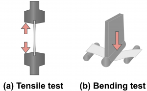 Fig. 1 Schematic of a typical tensile test and bending test.