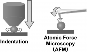 Fig. 2 Schematic illustrations of indentation measurement (left) and atomic force microscopy (right)