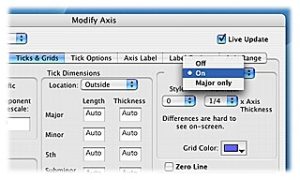 グラフの横軸は、20ごとに目盛りがついている。これをMajor Tickという。同じパネル中で、Grid をオンにするとグリッドが設定できる。