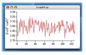 まず、縦軸に関するのAxis Range のタブで、Manual Scale にチェックをいれ、プロット範囲を 2.7e-7 から 3.3e-7 (もしくはあなたが思うきりのいい数字)に設定しよう。これでプロットの範囲は固定される。