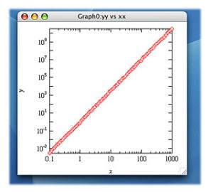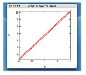 よって、オリジナルデータはそのままで、Duplicate(複製)コマンドを使って、以下のような logyy および logxx という名の wave を作成しよう。