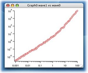 gnoise 関数は、平均値が「ゼロ」である正負の乱数で、これらの分布はガウス分布に従います。前回のwave1のデータに、1+gnoise(0.1)をかける事で、実際の実験データのように若干の乱れを導入する事ができるわけです。ちなみに、( )の中の数字は分布の広さを表しますので、この値が大きいほど上下に乱れたデータが作成できます。